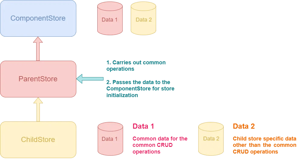 Take the store data from the child class (common + specific data) and provide to ComponentStore class