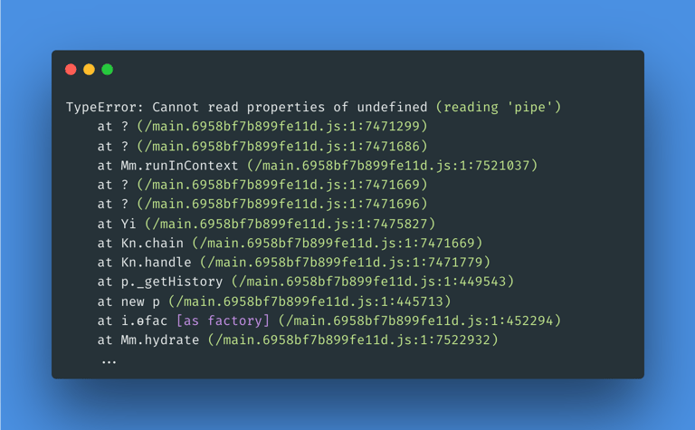 “Cannot read properties of undefined” in production is the last thing any developer would like to confront. We all can agree that it is such a terrible experience to debug this error in production, where the bundle is obfuscated & minified. No proper stack trace, all minified variables, no debugger & a lot of confusion & guesswork. Ahh, now we share the same pain…