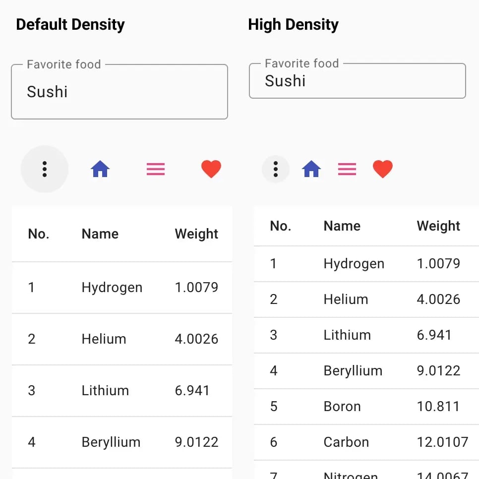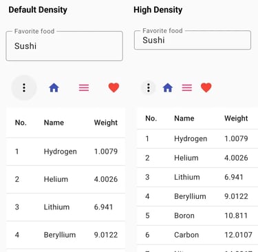Your app pages may require different page densities depending on their layout. You can achieve this by applying density to specific components using Sass mixins.