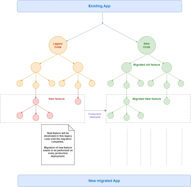 This option has its challenges of syncing the new feature release timelines with the migrated features as there will be two teams involved — the feature team and the migration team. Both teams need to be in proper sync to ascertain timely delivery. This is the most recommended option given that the stakeholders approve it, since it requires a lot of effort on the part of management.a