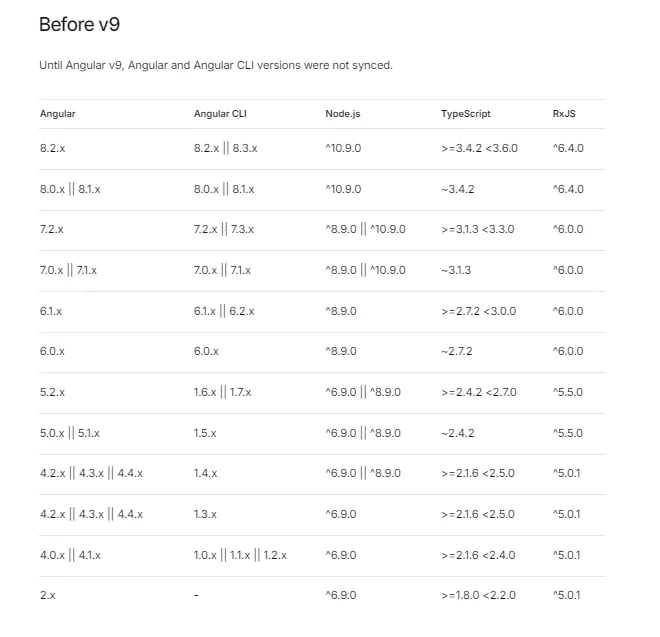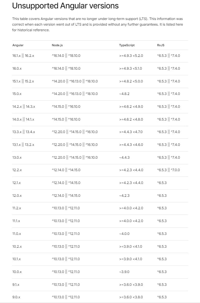 As of writing this article, the Angular team no longer supports versions v2 to v16.